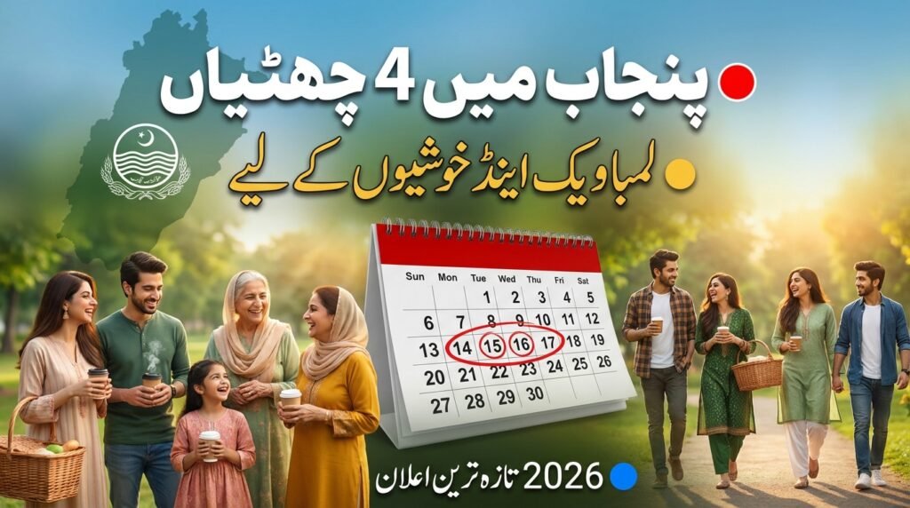 Chief Minister Punjab, Maryam Nawaz Sharif, has officially approved a Punjab CM Announces 4 Consecutive Holidays for the province, starting from